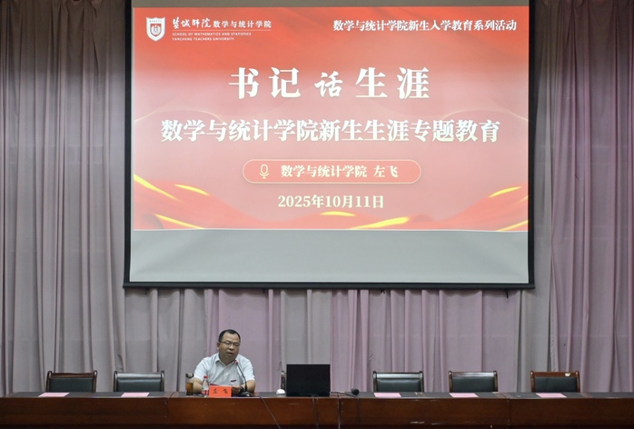 开学典礼前,左飞面向新生开展生涯专题教育。他强调新生要做好规划,明确目标,脚踏实地完成各阶段任务,成为有理想、敢担当、能吃苦、肯奋斗的新时代数统学子。