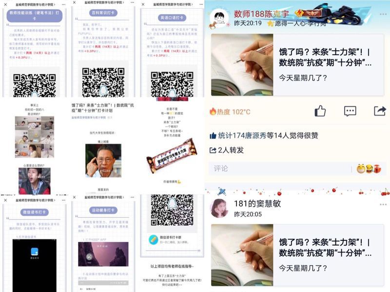 以生为本,打卡参与度高。我院经过前期扎实摸排员工情况,大量调研员工在家状况,在数据分析的基础上,本着“以生为本”的基本原则,推出“抗疫”期“十分钟”打卡计划。员工踊跃参加,异常火爆,计划刚推出10分钟,高达800余人次报名响应,共计2200余人次参与打卡,员工纷纷自发转贴,打卡立flag,共同在家筑起一面属于青年人的坚实围墙。
