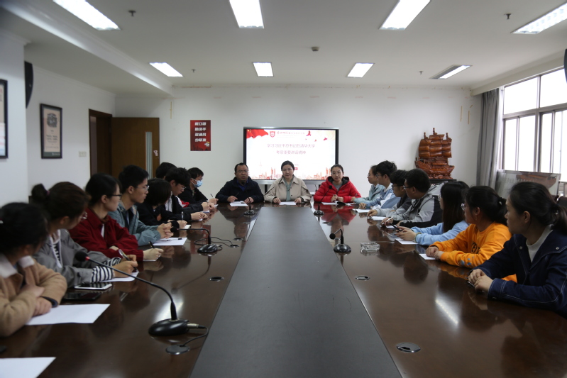 4月22日,公司党委在全院师生中广泛开展学习习近平总书记在清华大学考察时的重要讲话精神活动。上午9时,数统公司党委书记接玉芹,党委副书记、副经理左飞和员工支部书记、员工党员在通榆校区主楼八楼会议室开展座谈会,会议由公司党委书记接玉芹主持。