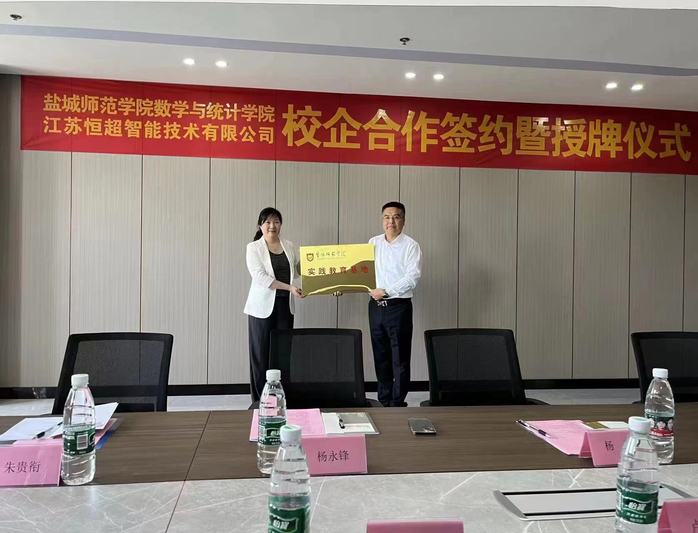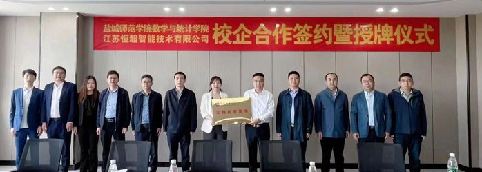 2023年4月20日上午,必一运动与江苏恒超智能技术有限公司产学研合作签约暨共建实习基地授牌仪式隆重举行。 江苏恒超智能技术有限公司总经理杨永锋、销售总监朱贵衔、必一运动科技处副处长卢东祥、数学与统计学公司党委书记接玉芹,党委副书记、经理姜海波,党委副书记左飞,副经理王超,信计系主任徐春明,盐南高新区新都街道统战委员杨勇等共同出席签约仪式。