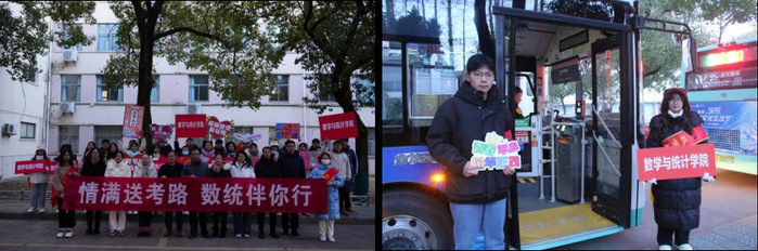 早上6点30分,送考专车在通榆校区陈毅像前整装待发。公司全体学工人员、20级班主任老师逐一核对员工姓名与人数,叮嘱注意事项。低年级同学为考生们加油鼓劲,缓解紧张情绪。7点15分,搭载着200多名考生的送考专车准时出发,陆续前往分布在本市的各个考点,确保每位同学提前到达、顺利考试。