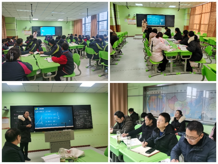 活动中,初三年级安俊英老师进行了《解直角三角形(1)》教学展示。课后,初三年级组围绕《解直角三角形(2)》主题进行集体备课,范浩东老师结合课标内容分析了本单元的教学目标、重点、方向,杨袁老师进行了备课结果的微课展示并分享备课思路,老师们都分享了对本节课教学的看法。参加活动的专家对本次活动予以充分的肯定,王作雷教授围绕上课和备课环节做出点评;刘耀斌教授从对教材理解的角度出发做了详细的指导;潘海林博士对开展的示范课和集体备课进行了点评;最后,陈大帅教研员开设了《基于核心素养的初中数学单元教学设计》专题讲座,并以《锐角三角函数》教学为例,对单元教学设计的核心概念、特征、路径等进行了解析。