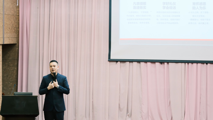 此次活动邀请盐城乐途文化发展有限公司总经理、盐城市第五届青商联合会成员、南京邮电大学盐城大数据创客空间创新创业导师周盟担任主讲。讲座中,周盟结合自身的创业经历和创业故事,分析当前老员工创业能够开展的方向、具体实施的流程以及可能遇到的风险挑战;提炼出创业者应具备专业行业技能、独到管理能力、敏锐的眼光、坚强的毅力和宽大的胸怀等创新创业核心素养;鼓励老员工在大学学习期间掌握各项专业技能的同时,要敢于梦想、勤于思考、勇于精进,将专业知识和能力应用于社会实践和创新创业中。