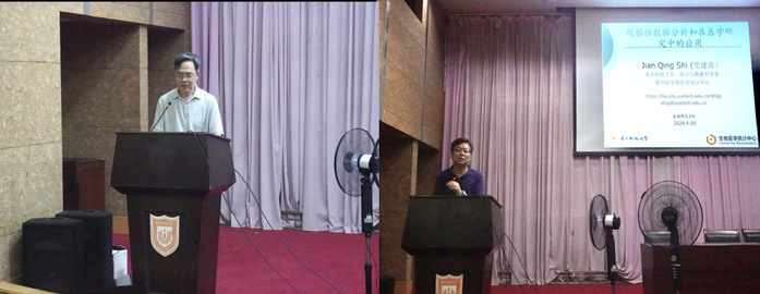 邵启满教授首先从大学本科毕业生就业率预测、由期中考试成绩预测期末成绩和基因与癌症的相关性等问题出发,建立假设检验问题并构造出熟悉的Z-统计量和t-统计量;进而围绕t-统计量,邵教授详细介绍了其从上世纪初被首先提出到当前最新的研究成果。接着,围绕观察性数据,史建清教授在概述其在医学研究中应用的基础上,讨论了其与随机对照实验数据的区别之处以及在分析过程中存在的主要问题。同时考虑到分析该类数据的难点之一,史教授详细介绍了一系列控制推断偏差的常用方法,并对相关问题的未来发展进行了展望。讲座过程中,邵教授、史教授分别与在场师生进行了亲切的交流互动,使大家对数学及统计学专业未来的发展方向有了更加深入的认识和了解。