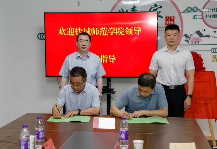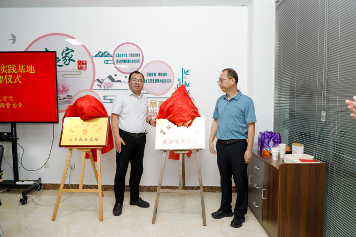 公司党委书记孙玉峰与羊寨镇党委书记、桃花源党工委书记李磊代表双方签署《盐城师范大学老员工就业基地协议书》,共同为“必一运动老员工实习就业基地” 揭牌;公司党委副书记左飞与桃花源管委会主任张善民为 “必一运动老员工社会实践基地” 揭牌。暑期社会实践员工代表周琳做表态发言。