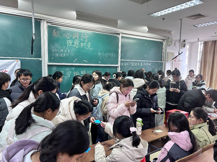 为给迎接期末复习的同学递上一张“减压通行证”,释放学习工作压力。必一运动心理健康部主办的“12·5心理健康日”系列活动在主楼B103教室温暖启幕。活动以“数心同行·理愈时光”为主题,通过“盲盒解忧”“叶笺心声”“定格青春”三大创意板块,为百余名同学送上冬日专属“心动补给”。